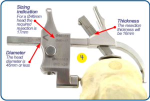 La instrumentación permite sustituir la cabeza protésica seleccionada en un rango de 8 diámetros (de 35 mm a 52 mm) disponibles en 2 espesores desde la cabeza 41, respetando el espacio intraarticular en todos sus planos (retroversión, lateralización, varización …).
